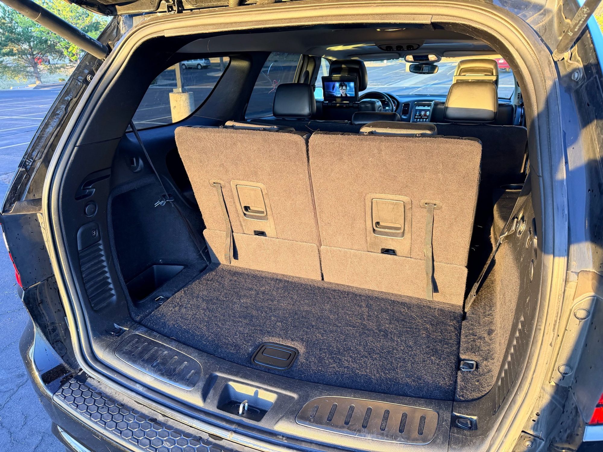 Third-row seatback upholstery: Carpet third-row seatback upholstery